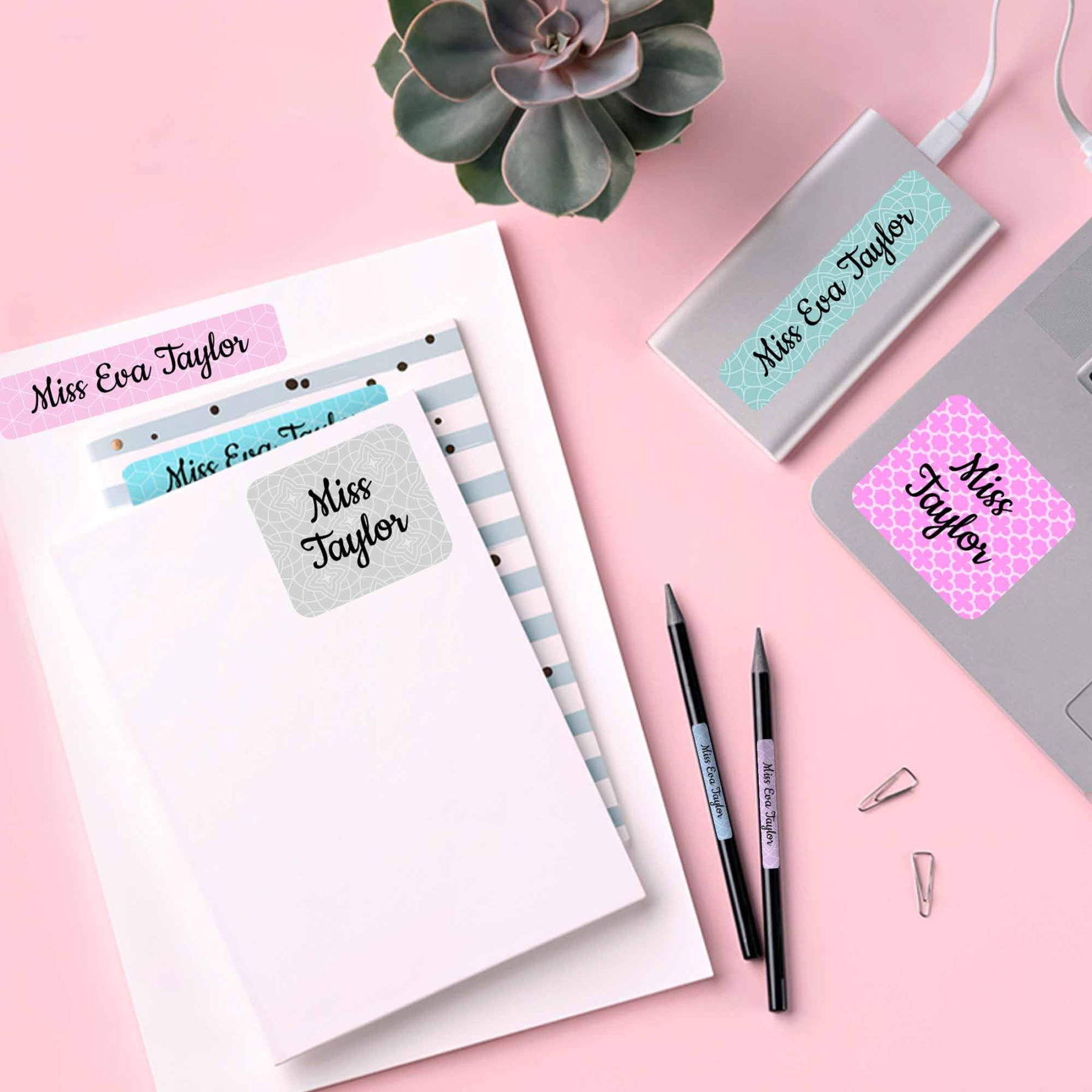 Lets’ think beyond coffee mugs! A perfect, thoughtful “thank you” gift for teachers is here! Personalized, stylish, and functional labels are sure to get you an A+! A great way for teachers to keep their school gear organized and from “disappearing” from their classroom! Labels can be used on books, binders, staplers, pens, etc.