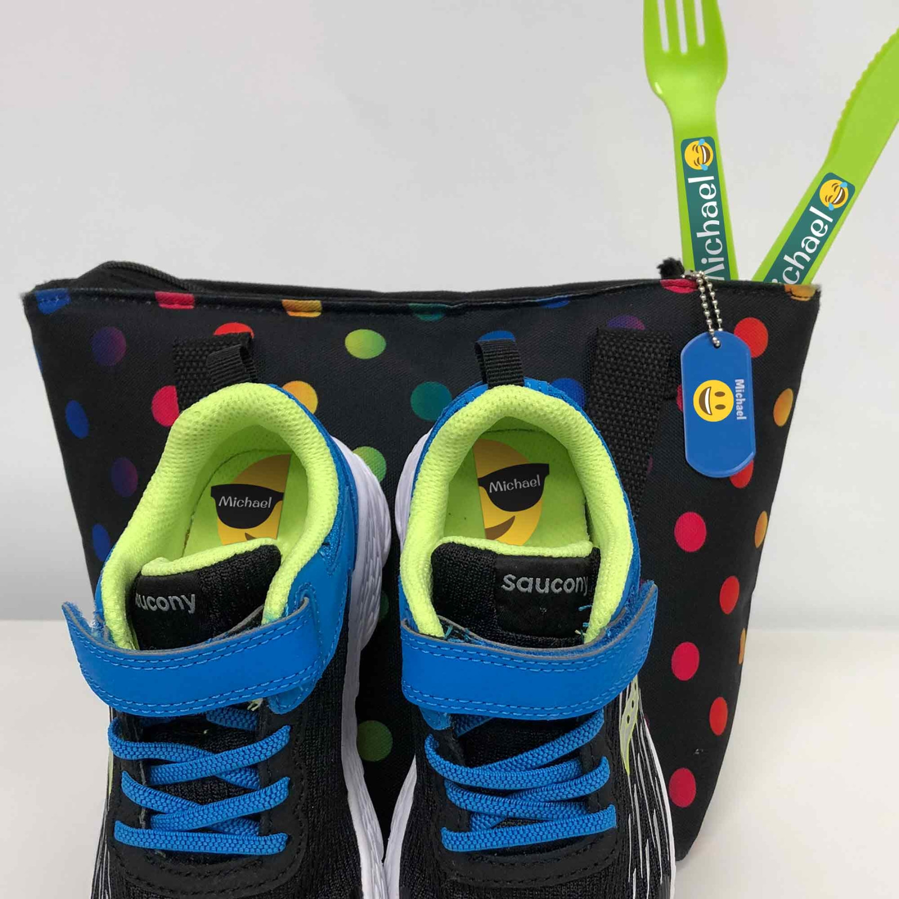 Get them ready for school with our adorable NEW Kindergarten Pack! This pack contains playful fun shapes & perfect sized labels that are all dishwasher safe, microwave proof, washer and dryer safe so go ahead and label everything from snack, drink containers, lunch boxes, backpacks and extra clothing. The fun Match-it Shoe Labels are educational and teaches them left from right so you can always ensure the right shoe is on the right foot and no more mix-ups!